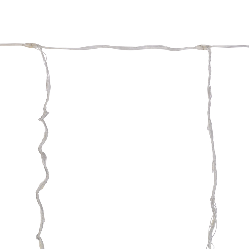 Профессиональная гирлянда-занавес 2×9 м с 480 белыми LED и эффектом «водопад». Прозрачный ПВХ-провод незаметен на светлых и стеклянных поверхностях. IP65 защищает от влаги и пыли, безопасное питание 24 В. Подходит для уличного и внутреннего оформления фасадов, деревьев, елей, заборов и колонн.