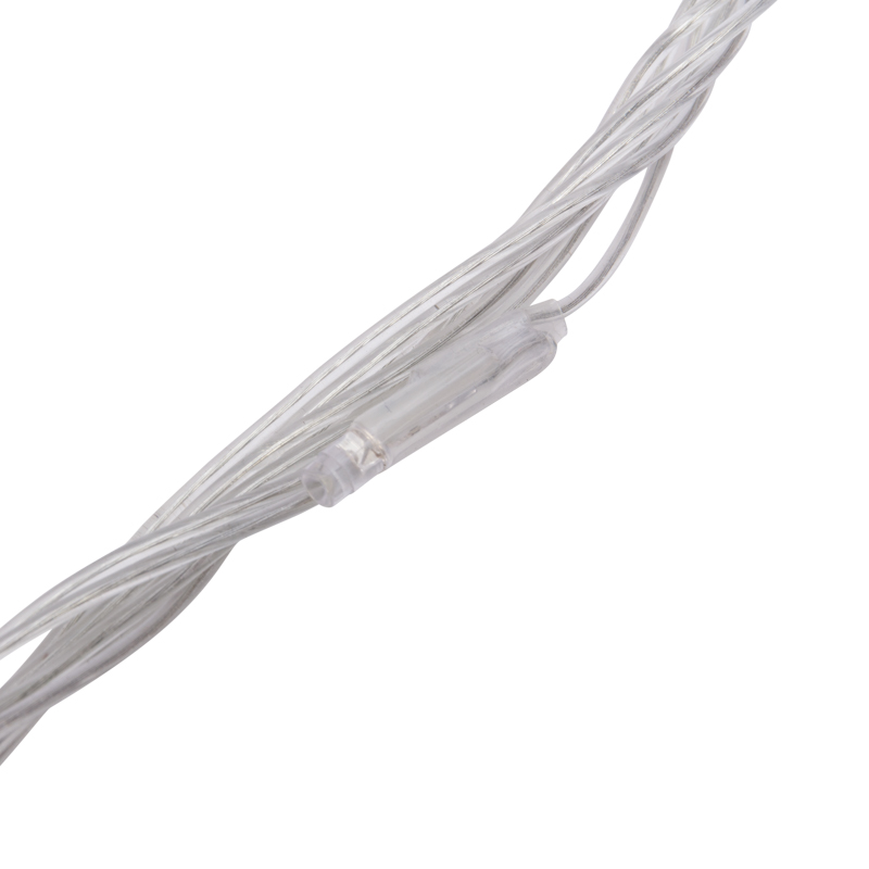 Провод выполнен из прозрачного ПВХ — он гибкий, прочный и устойчив к перепадам температур. Белые светодиоды равномерно распределены по всей длине, что обеспечивает плотный, насыщенный световой поток.