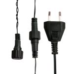 Провод тёмно-зелёный, на хвое его почти не видно. Общая длина — 5 метров, плюс 3 метра питающего провода до розетки. Даже если розетка далеко — всё подключается без удлинителя.