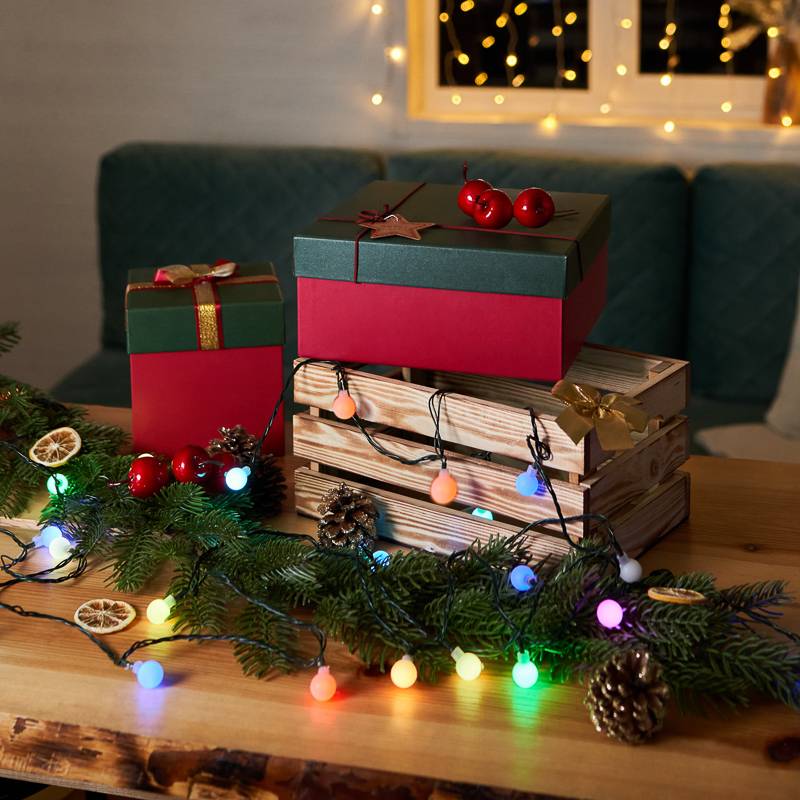 Гирлянда из RGB-шариков диаметром 18 мм — яркая, лёгкая и готовая к подключению. Подходит для декора ёлок, окон, полок, детских и фотозон. Быстрая смена цвета, насыщенное свечение и безопасное подключение от сети. Идеальна для домашнего использования в праздники и будни.