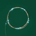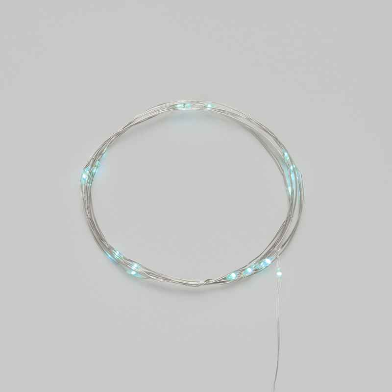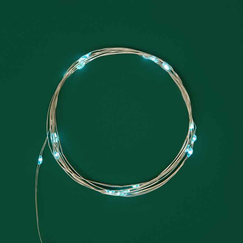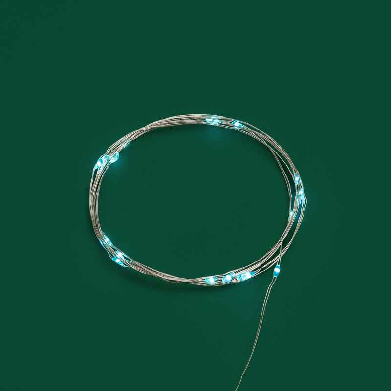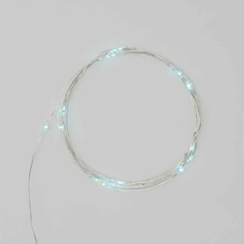 Яркая гирлянда-нить «Роса» длиной 2 м с 20 бирюзовыми светодиодами. Постоянное свечение создаёт свежий и необычный световой акцент. Питание от батареек позволяет размещать её где угодно без проводов. Серебристый металлический провод почти незаметен в декоре. Отлично подходит для ёлок, интерьерных композиций, фотозон и праздничного оформления помещений.