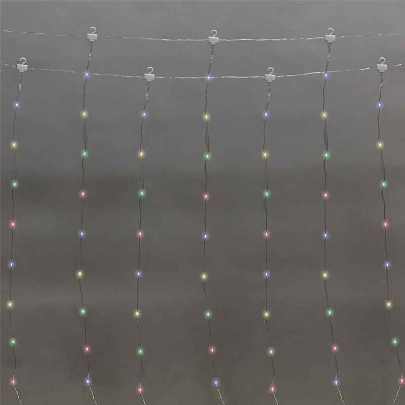 Гирлянда-занавес из росы 3×2 м с мультиколорным свечением — это готовое решение для создания праздничного настроения. 200 разноцветных светодиодов рассыпаны на тонких серебристых нитях, словно настоящие капли росы, и создают лёгкий сияющий фон.