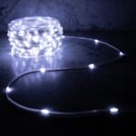 На прозрачном проводе почти незаметна днём и даёт чистое белое свечение вечером. Подходит для витрин, свадебных залов, торжественных входов, колонн и фотозон. Работает от безопасного 24 В, не перегревается и может быть включена до 10 часов подряд.
