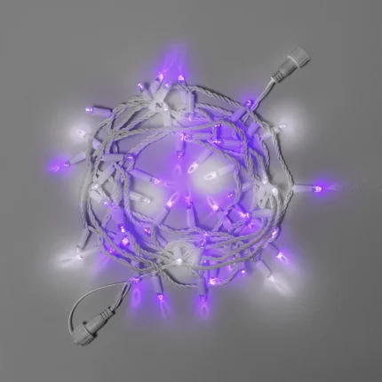 Фиолетовая уличная гирлянда с мягким мерцанием. 100 LED на белом каучуке. Идеальна для деревьев, фасадов, перил. Надёжность, эффект и премиум-качество.