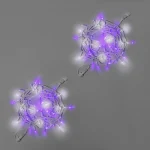Гирлянда даёт глубокое фиолетовое свечение с эффектом мерцания: каждый 7-й или 10-й диод мягко мигает, добавляя жизни и динамики. Такая подсветка не раздражает, а подчёркивает детали — особенно в вечернее и ночное время.