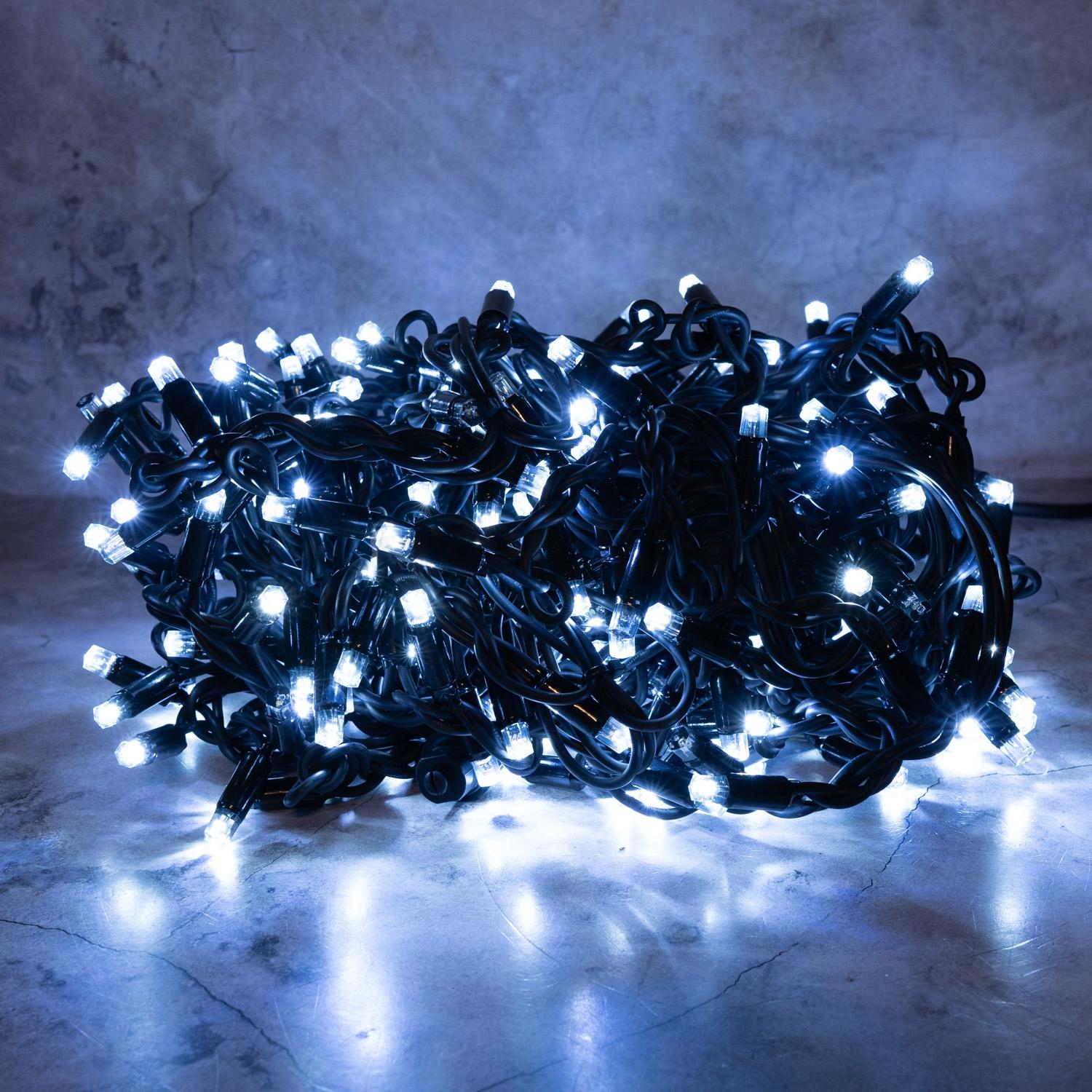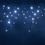 Гирлянда с холодно-белым светом и эффектом лёгкого мерцания. Провод — чёрный каучук, влагозащита IP65. Надёжное решение для фасадов, крыш и входных зон. Соединяется до 50 м.