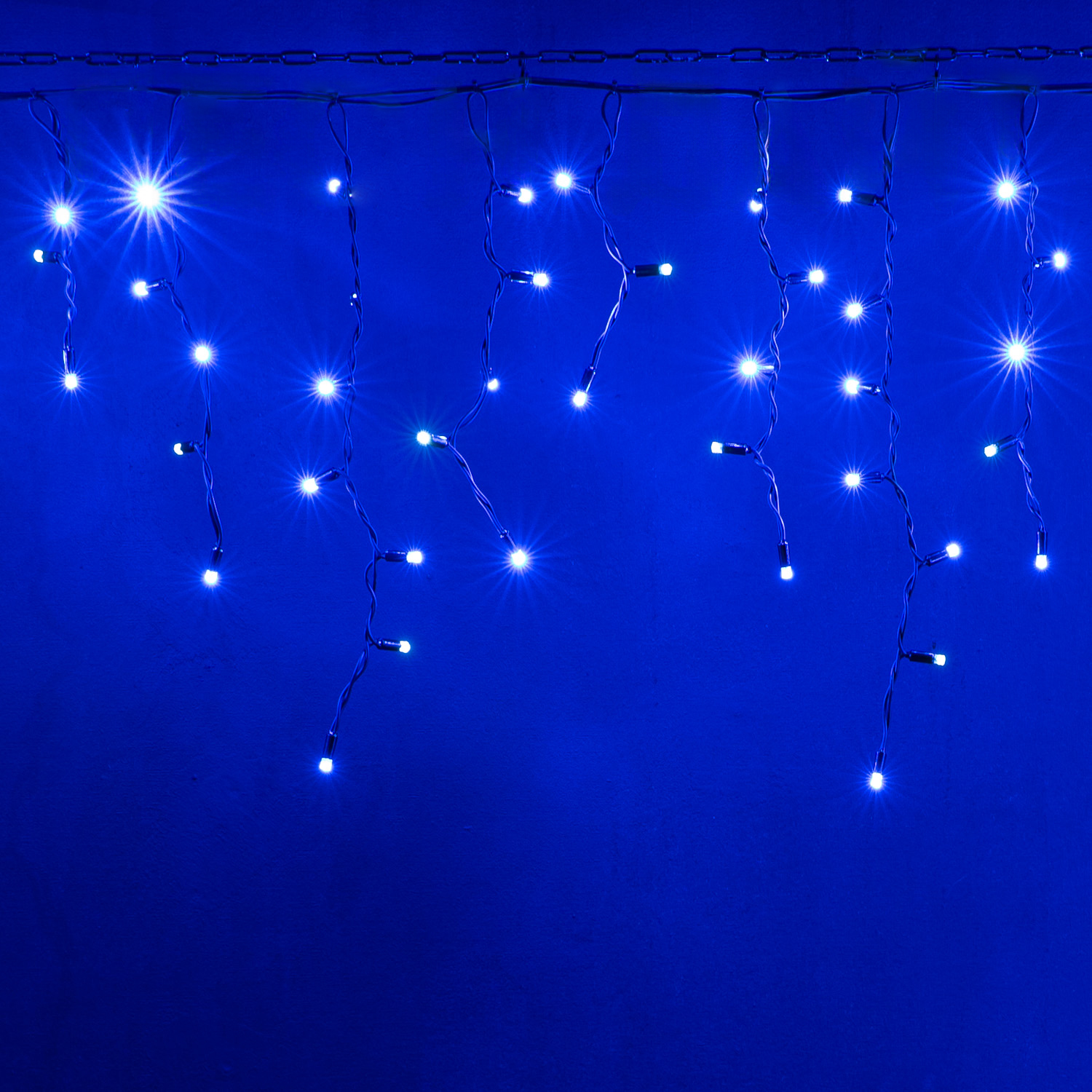 Синяя бахрома с мерцанием для создания яркой праздничной атмосферы. Чёрный морозостойкий провод, защита IP65. Соединение до 50 м. Подходит для фасадов, крыш, заборов и деревьев.