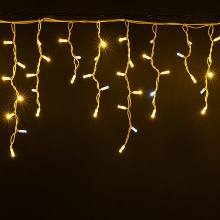 Бахрома на белом каучуковом проводе с мягким тёплым светом. Мерцание добавляет уюта, равномерное свечение без провалов. Защита IP65, соединение до 50 м. Подходит для улицы, террас и светлых фасадов.