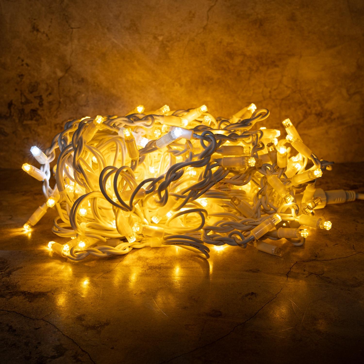 Провод — каучук 3.3 мм, устойчивый к морозу, УФ и механическому воздействию. Он не дубеет, не трескается, не выцветает. Класс защиты IP65 — гирлянда не боится осадков и перепадов температуры.
