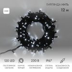 Гирлянда Нить 12 м Белая Статика, 120 LED, Чёрный Каучук, IP67