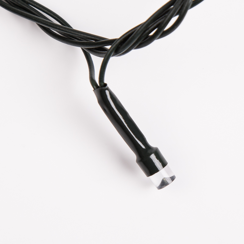 В отличие от прозрачных или белых моделей, тёмно-зелёный ПВХ-провод идеально маскируется среди веток ёлки и тёмного фона. Вы видите только свет — провода не портят картину.