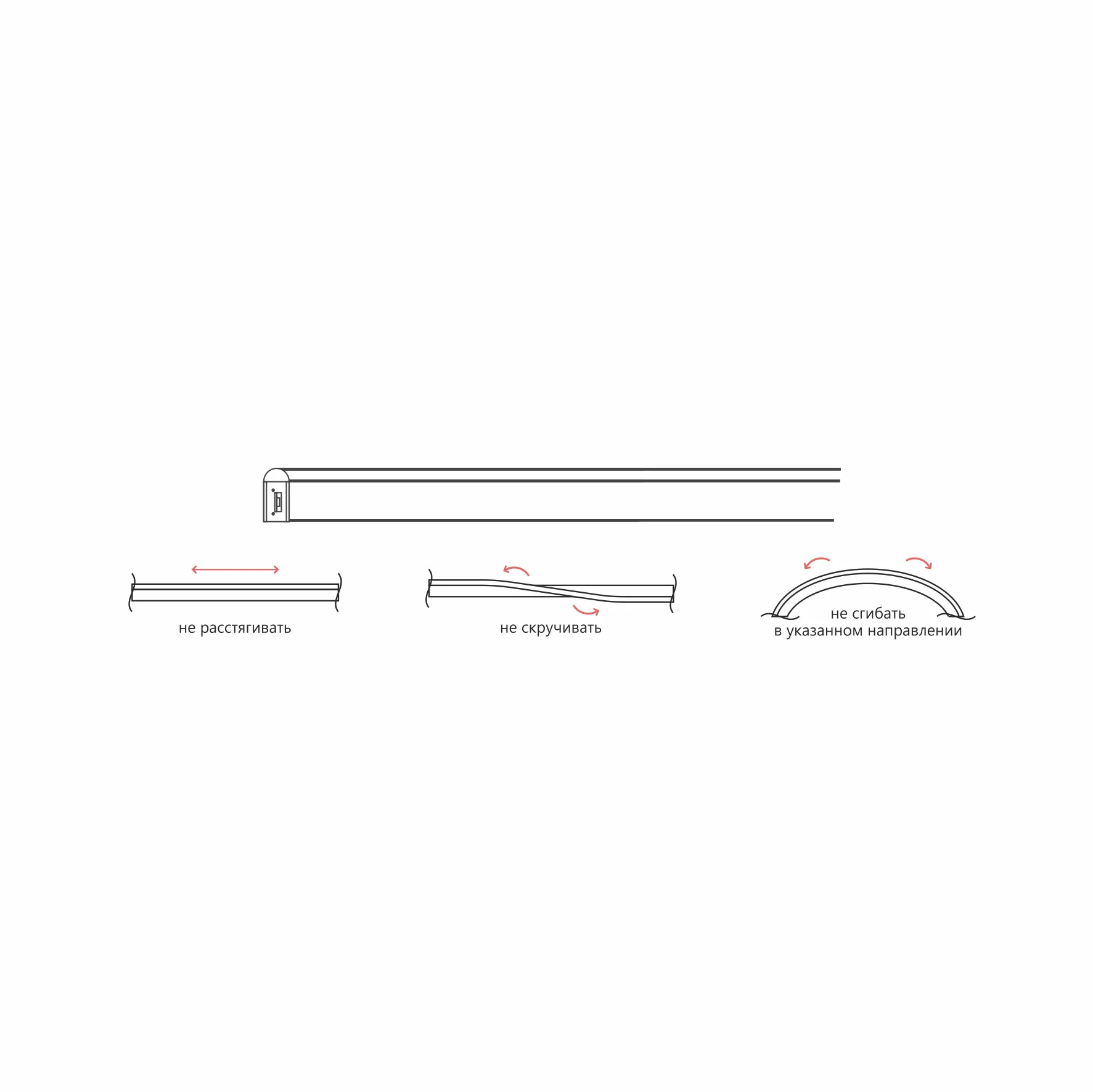 Лента гибкая, допускается нарезка кратно 100 см. Это даёт возможность адаптировать её под конкретный объект: сделать нужную длину, обогнуть углы, оформить текст или фигуры. При необходимости сегменты соединяются в цепь с помощью специальных аксессуаров.