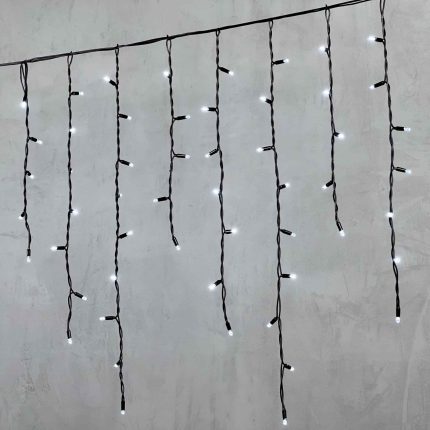 Гирлянда Бахрома 1,8×0,5 м Белая, 48 LED, Динамическое свечение, Прозрачный ПВХ, IP20