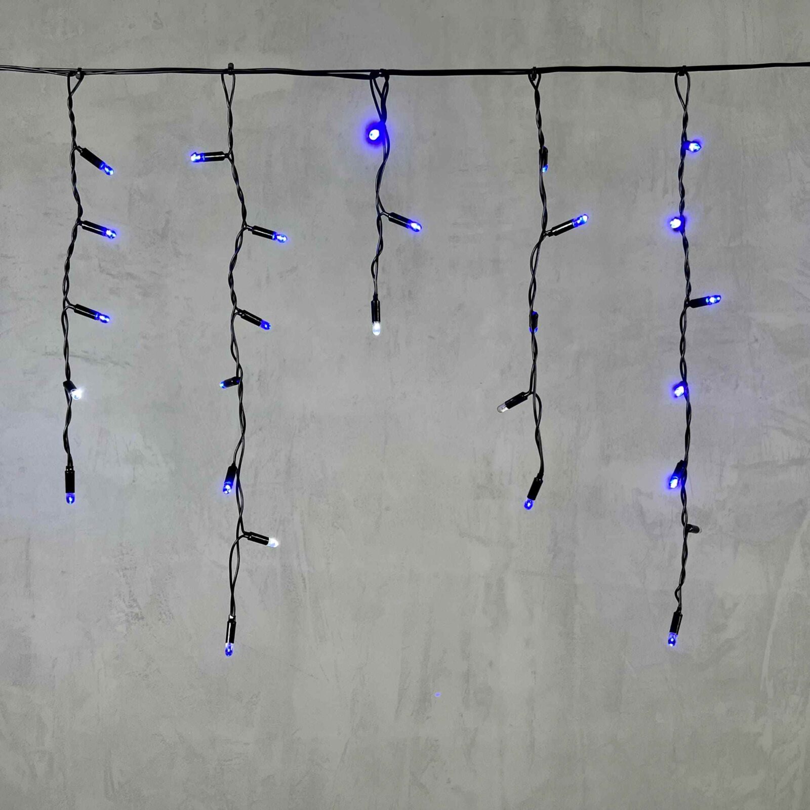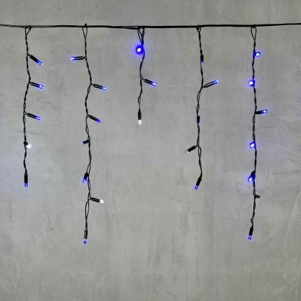 Гирлянда-бахрома длиной 3,1 метра — это насыщенное синее свечение, подчёркнутое лёгким мерцанием белого диода.