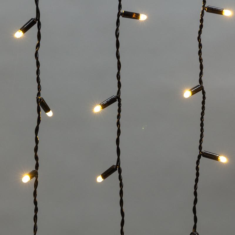 Надёжная гирлянда с тёплым светом и мягким мерцанием. 176 диодов, IP65, чёрный ПВХ. Подходит для фасадов, заборов, навесов. Устойчива к осадкам.
