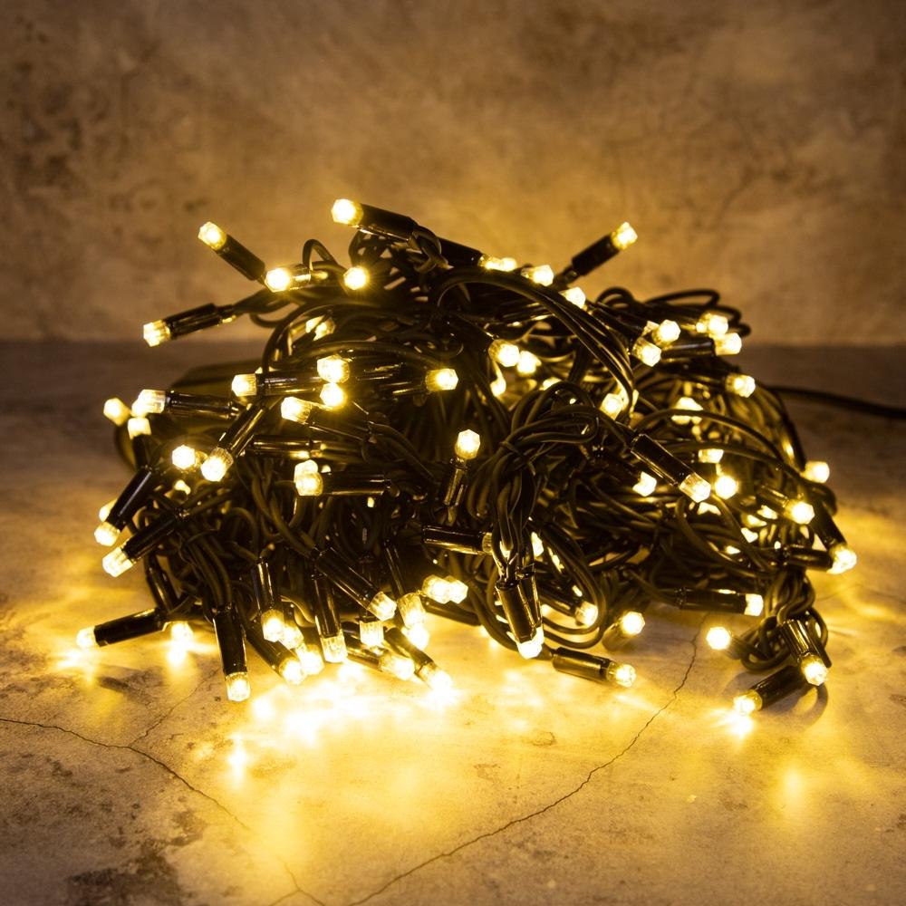 Гирлянда с тёплым свечением на чёрном каучуке. Плавные лучи до 70 см, надёжная защита IP65, 150 светодиодов. Отличный выбор для фасадов и деревьев.