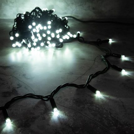 Универсальная гирлянда длиной 10 метров с ярким белым свечением и устойчивым белым каучуковым проводом. Влагозащита IP65, 100 светодиодов, статичное свечение, соединение до 80 м. Отличный выбор для уличной подсветки фасадов, деревьев и новогоднего оформления.