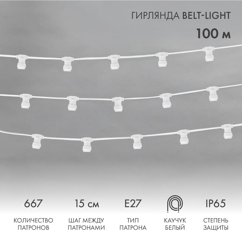Гирлянда Белт-Лайт 100 м, E27, 667 патронов, шаг 15 см, IP65, белый ПВХ