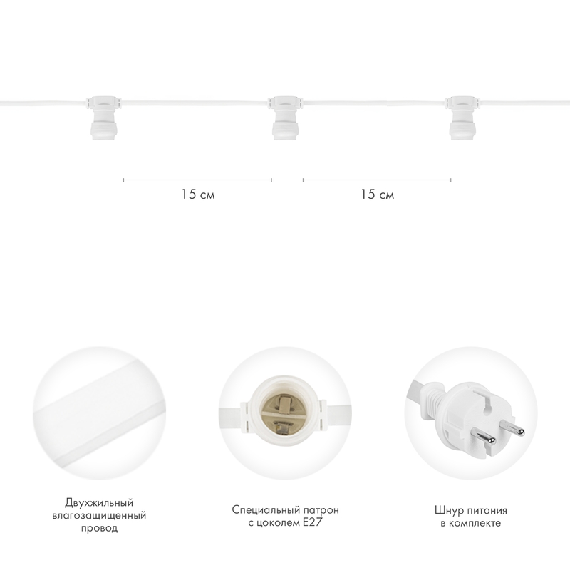 Купить гирлянду Белт-Лайт 100 м, E27, 667 патронов, шаг 15 см, IP65, белый ПВХ в интернет-магазине компании JOYLED в Москве.