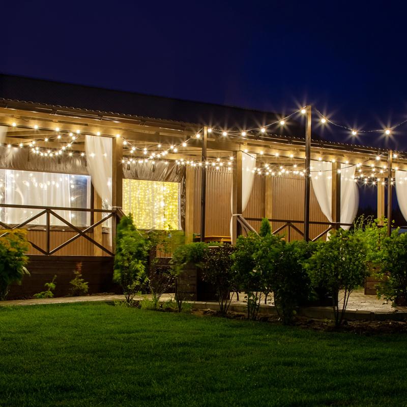 Белт-Лайт JOYLED — универсальное решение для декора фасадов, уличных кафе, ресторанов, пергол и навесов. Гирлянда часто используется в ландшафтном дизайне и в архитектурной подсветке домов в Московской области. Она позволяет создать уютную атмосферу и акцентировать контуры здания или зоны отдыха. При дневном освещении чёрный провод незаметен, а вечером виден только чистый световой рисунок.