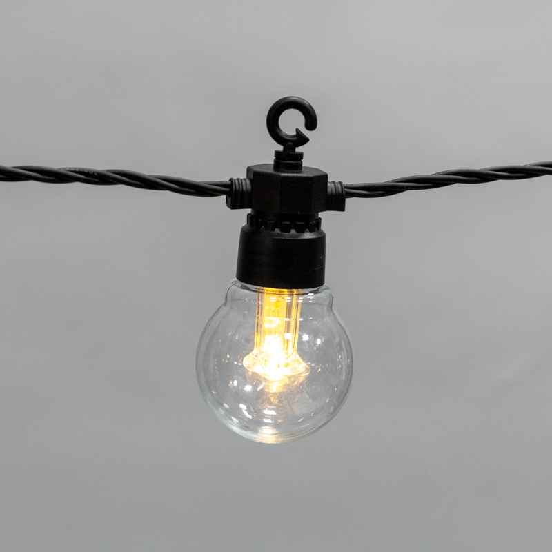 Белт-Лайт «Лофт» — уличная гирлянда длиной 10 м с 20 прозрачными тепло-белыми патронами E27 и чёрным каучуковым проводом IP44.
