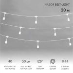 Гирлянда Белт-Лайт «Лофт» 20 м, провод белый каучук, шаг 50 см, 40 подвесных патронов, IP44