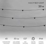 Гирлянда Белт-Лайт «Лофт» 20 м, провод чёрный каучук, шаг 50 см, 40 патронов, IP44