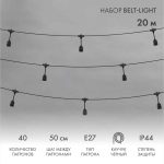 Гирлянда Белт-Лайт «Лофт» 20 м, провод чёрный каучук, шаг 50 см, 40 подвесных патронов, IP44