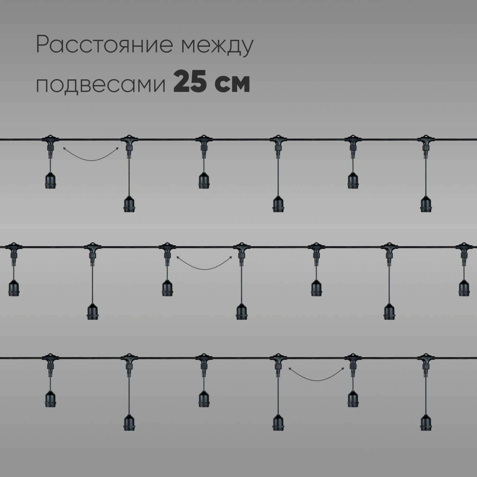 Белт-Лайт UNIBELT 10м, Провод Черный Каучук, Шаг 25 см, 40 Подвесных Патронов, IP65