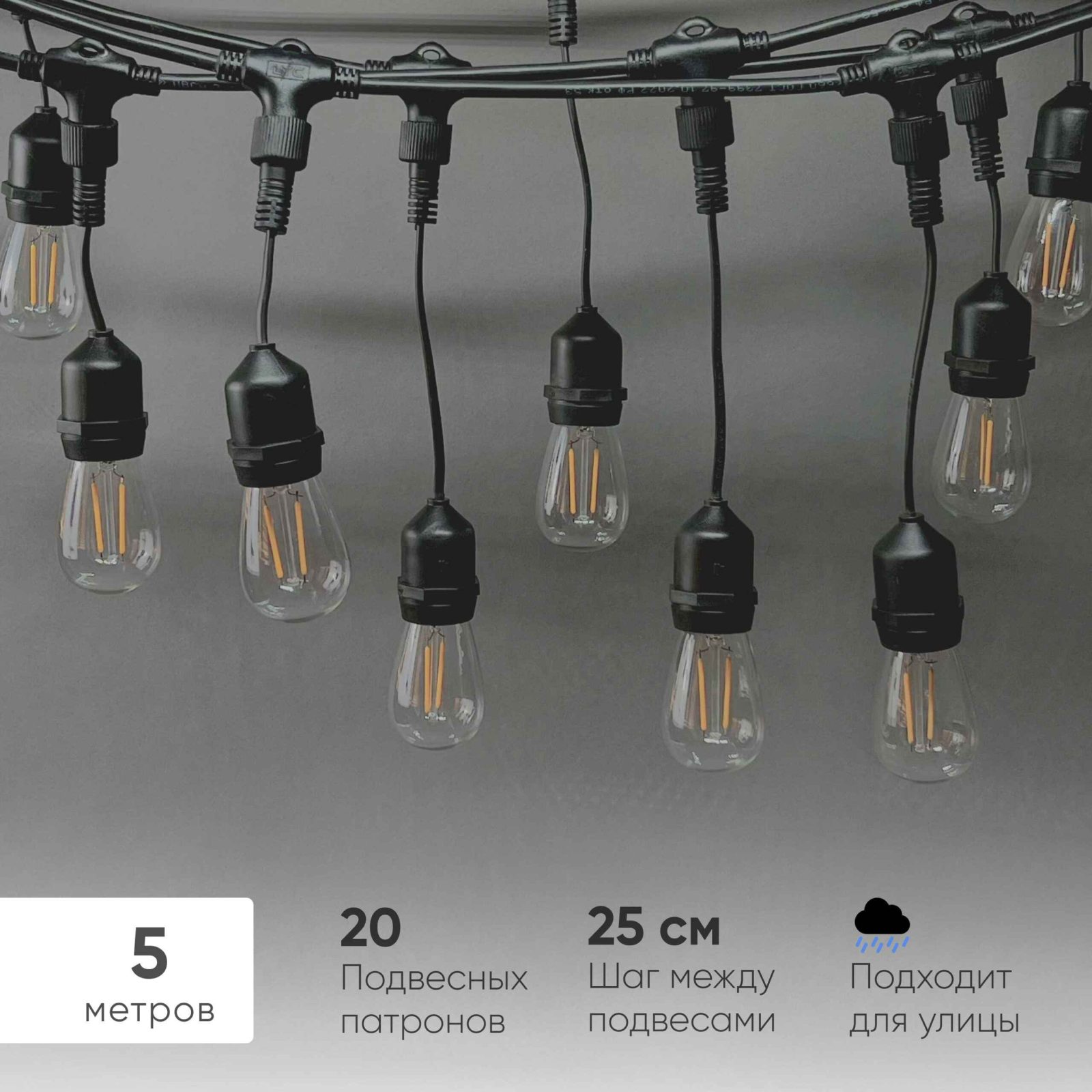 Белт-Лайт UNIBELT 5м, Провод Черный Каучук, Шаг 25 см, 20 Подвесных Патронов, IP65