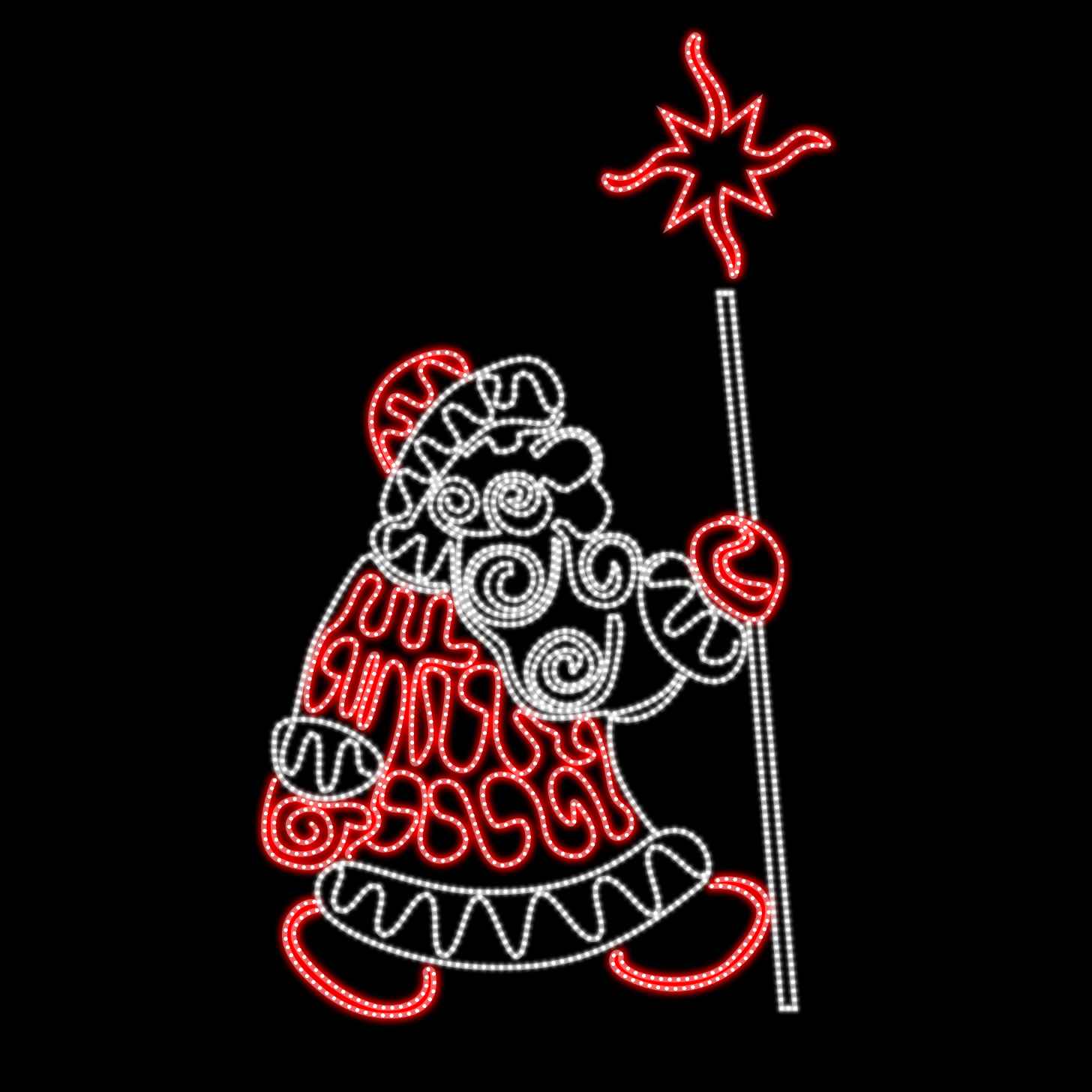 Световая фигура «Дед Мороз кружевной» — это элегантное решение для новогоднего оформления улиц, входных групп, фасадов и открытых пространств. Изящная конструкция в ажурном стиле напоминает старинные новогодние открытки и создаёт атмосферу волшебства, праздника и ностальгии. Такой Дед Мороз сразу притягивает взгляд и вызывает тёплые эмоции — как у детей, так и у взрослых.