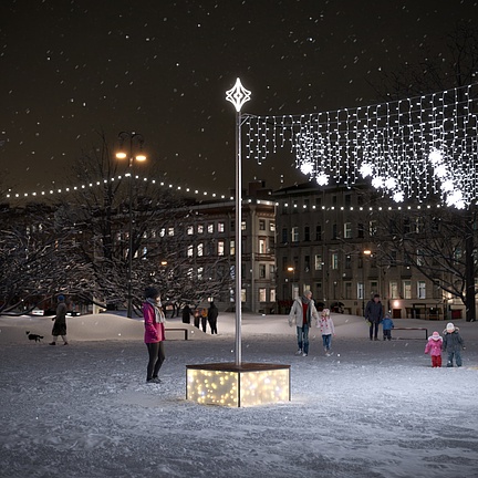 Эта модель подходит для масштабных городских проектов, оформления общественных пространств и частных территорий. Опора создаёт акцент в ансамбле новогодних украшений или выступает самостоятельным арт-объектом.
