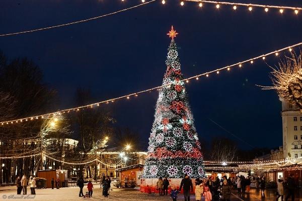 В тёмное время суток ель особенно эффектна: световые акценты, гирлянды и LED-композиции усиливают насыщенность оттенка и создают ощущение сияния. Этот дизайн отлично подходит для территорий, которые стремятся подчеркнуть праздничный характер и привлечь поток посетителей.
