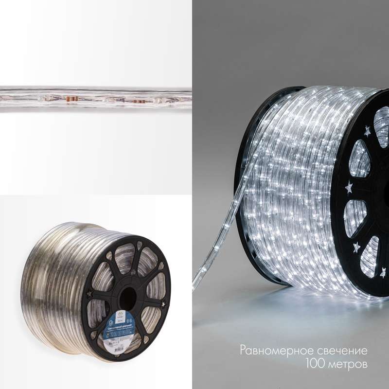 Купить Светодиодный Дюралайт Ø13 мм, трёхжильный, БЕЛЫЙ, 230 В, 24 LED/м, с динамическим свечением, модуль 4 м, бухта 100 м в интернет-магазине компании JOYLED в Москве.