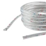 Прозрачный ПВХ-корпус Ø13 мм защищает ленту от влаги и механических повреждений. Степень пылевлагозащиты IP65 гарантирует бесперебойную работу при дожде, снеге и температурах от –25 до +40 °C. Питание от сети 230 В и кратность резки 1 м позволяют легко адаптировать ленту под любую длину. Бухта 100 м удобна для масштабных проектов и снижает количество стыков при монтаже.