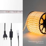 Светодиодный Дюралайт Ø13 мм, двухжильный, жёлтый статика, 230 В, 24 LED/м, модуль 2 м, бухта 100 м