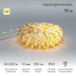 Светодиодный Дюралайт фиксинг Ø10 мм, двухжильный, тепло-белый статика, 230 В, 24 LED/м, модуль 1 м, бухта 10 м