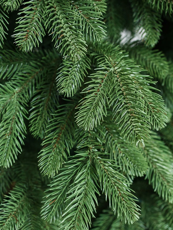 Хвоя изготовлена из плотной ПВХ-плёнки, точно повторяющей фактуру живых еловых веток. Мягкие иголки не ломаются и не осыпаются, а глубокий зелёный цвет сохраняется при солнце и морозе.