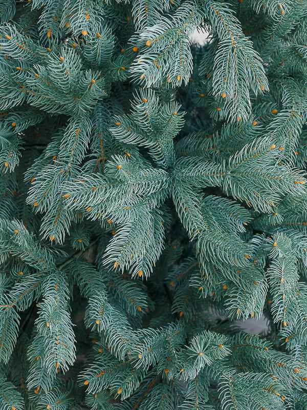 Хвоя изготовлена из плотной ПВХ-плёнки высокого качества. Мягкие, упругие иголки не осыпаются и не ломаются даже на морозе. Материал не впитывает влагу и не выцветает под солнцем, поэтому ель можно использовать на улице и в помещении.