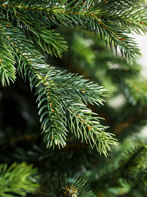 Хвоя изготовлена из прочной ПВХ-плёнки с огнестойкими свойствами. Цвет — насыщенно-зелёный, текстура имитирует живую хвою, блеск — деликатный. Даже без декора ёлка выглядит завершённой.