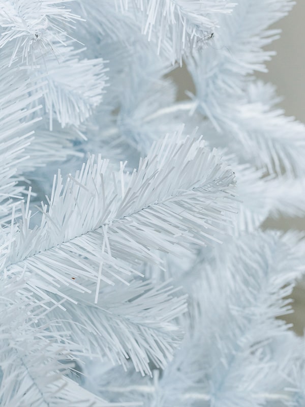 Хвоя изготовлена из прочной ПВХ-плёнки с длиной иголок 45 мм, что придаёт ели плотность и визуальную глубину. Материал устойчив к ультрафиолету, влаге и перепадам температур, не осыпается и не выгорает.