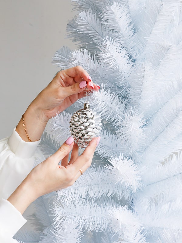 прозрачные или золотые игрушки подчеркнут мерцающий эффект снега;
