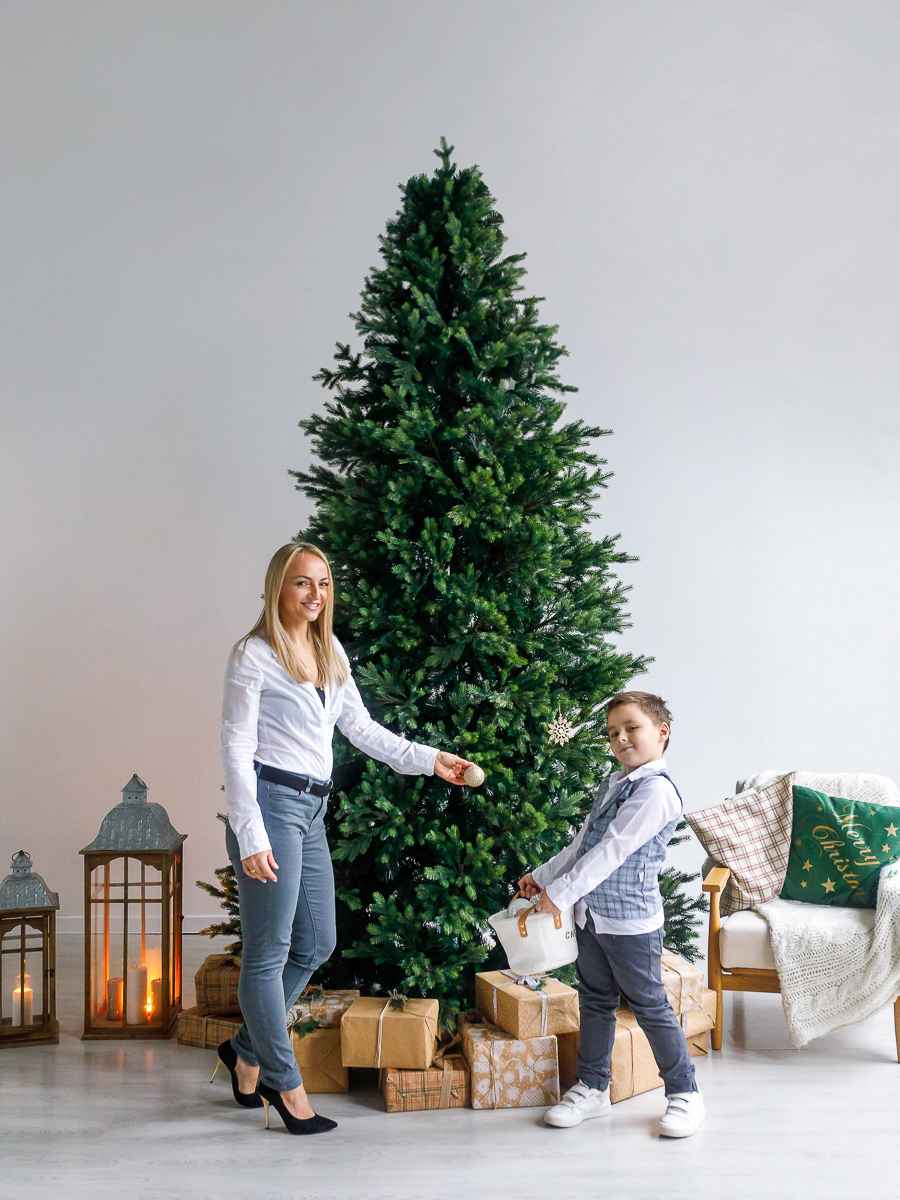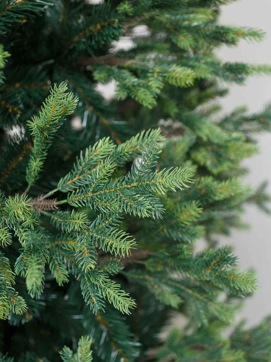 Ель «Сказочная» создана для тех, кто ценит гармонию, масштаб и традиции. Она полностью оправдывает своё название — пышная, высокая, с равномерной формой кроны и глубоким зелёным оттенком. Каждая ветка выглядит реалистично и мягко переливается на свету, наполняя пространство ощущением уюта.