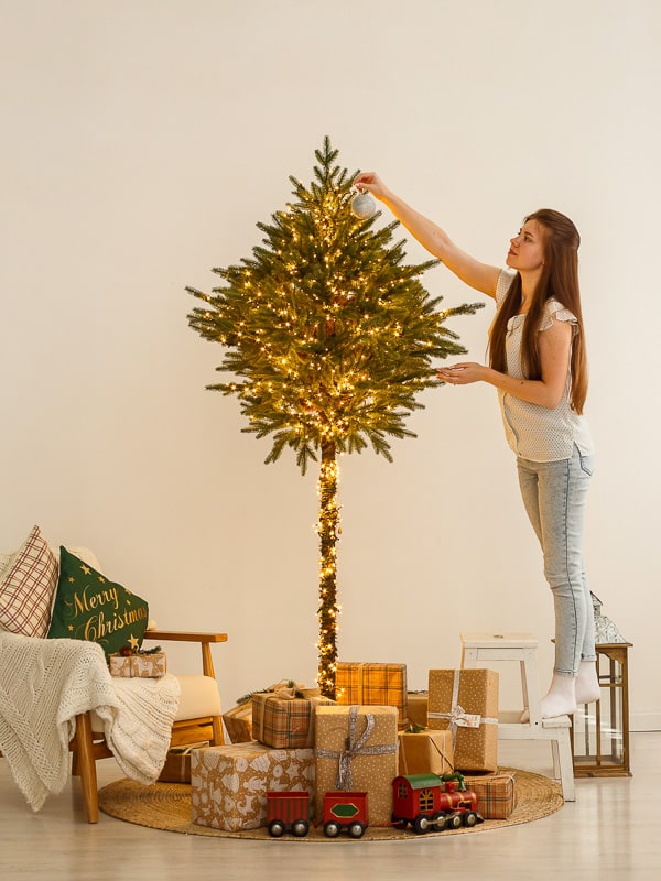 Хвоя из ПВХ-плёнки повторяет текстуру живого дерева, не выцветает и не деформируется. Благодаря высоте 2,1 м и оптимальной ширине менее метра, ель удобно размещать в любой локации — от городского фойе до уличной зоны перед рестораном.