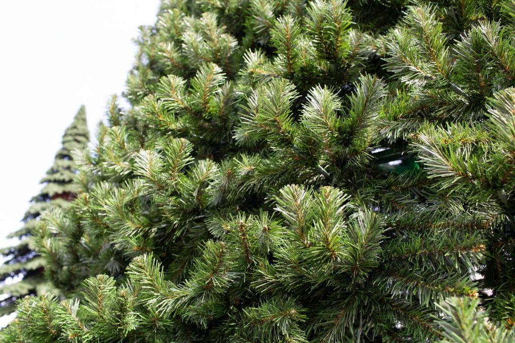 Хвоя выполнена из высококачественной ПВХ-плёнки с текстурой, имитирующей натуральные еловые ветви. Плотное переплетение иголок создаёт равномерную форму без просветов, а глубокий зелёный цвет добавляет насыщенности и объёма.