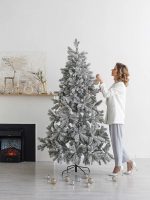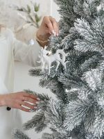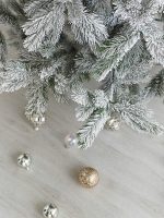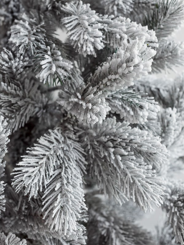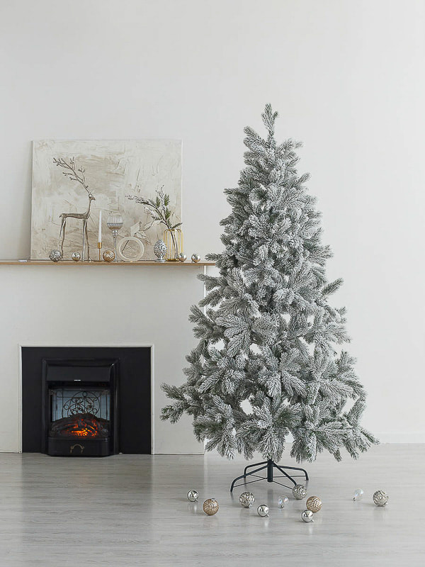 Ветви изготовлены из прочной ПВХ-плёнки с густым покрытием, а на концах нанесён аккуратный снежный налёт. Такое сочетание придаёт ёлке свежий и натуральный вид: она словно только что из морозного леса.
