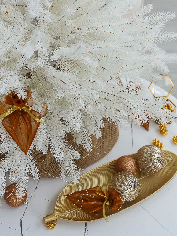 Белая поверхность хвои подчёркивает любой декор и освещение: