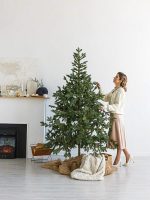 Крепление ветвей — отгибное, поэтому установка занимает всего 10–15 минут. Ветви расправляются без инструментов и формируют ровную, симметричную крону. После праздников ёлку легко упаковать и хранить до следующего сезона.