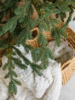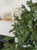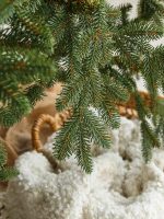 Хвоя изготовлена из плотной ПВХ-плёнки премиального качества. Она упругая, не ломается и не осыпается, устойчива к ультрафиолету и влаге. Материал визуально и тактильно повторяет фактуру настоящих еловых ветвей.