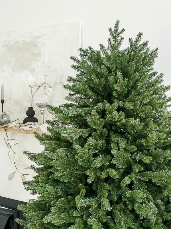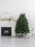 Конструкция ветвей — вставная: каждая ветка плотно фиксируется в основании, создавая объёмную и аккуратную крону. Такой способ крепления повышает устойчивость к нагрузке от гирлянд и украшений и обеспечивает естественную симметрию.